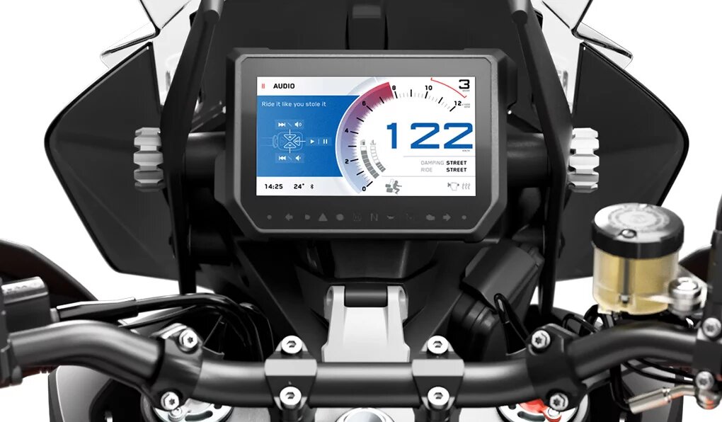 With a sledgehammer hit of 160 hp and a massive 138 Nm of earth-twisting torque, the proven V-twin LC8 engine once again takes the accolades as the most compact, lightest, and best performing engine in the segment. Its greener too, meeting all EURO5 regulations and will deliver 15.000 km service intervals and low fuel consumption, trip after trip, mile after mile.